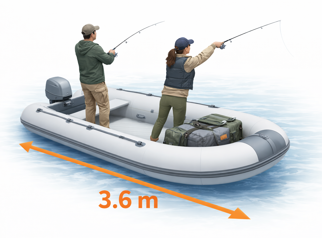 The 3.6 m inflatable boat supports higher loads without compromising performance. It remains stable when carrying fishing gear and equipment.