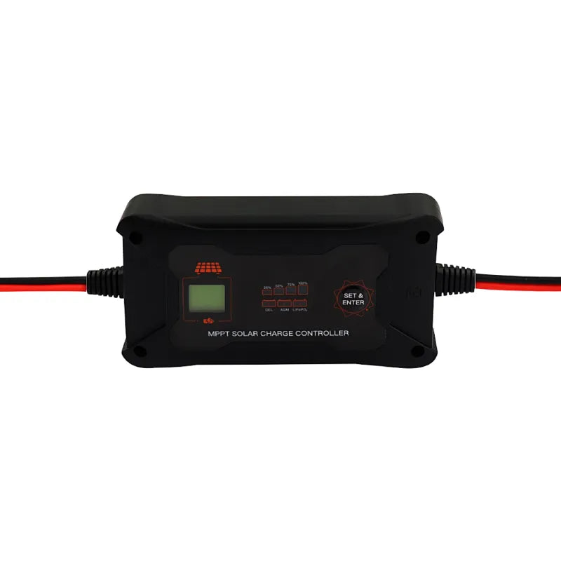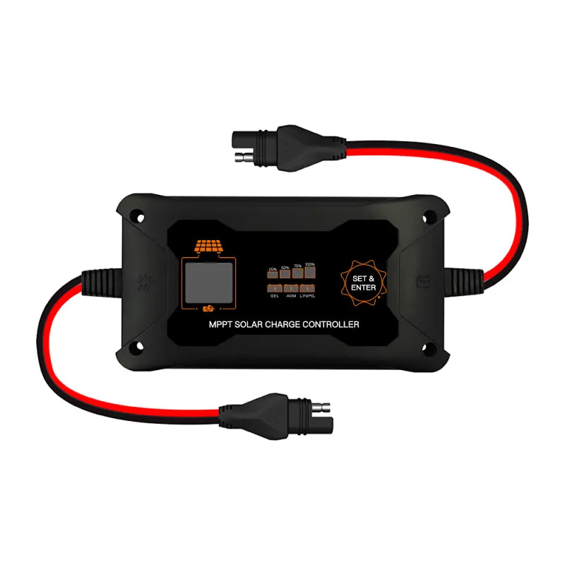 - MPPT solar charge controller with portable design;