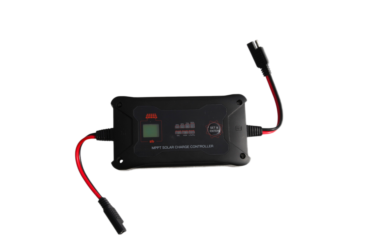- One solar panel in a rigid module with SAE connector for connecting to a charge controller;