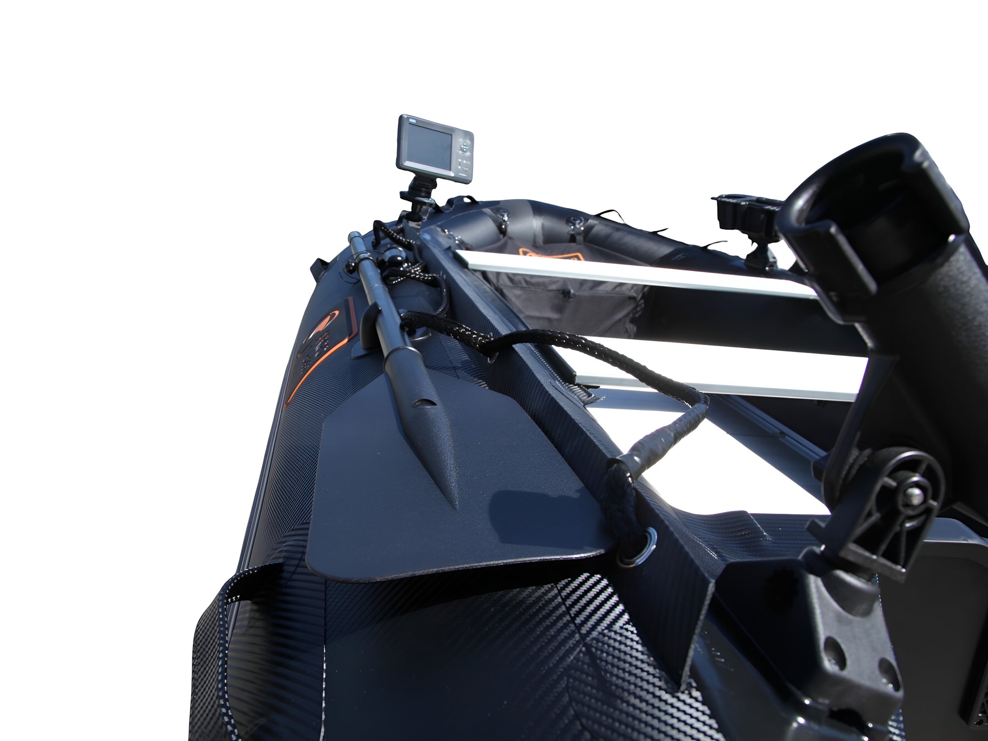Многокамерный баллон выполнен из современного высокопрочного материала Carbon-PVC плотностью 1100 г/м², что гарантирует максимальную долговечность и безопасность. Усиленный надувной киль обеспечивает стабильное и уверенное управление, а продуманная конструкция позволяет быстро и легко собрать и разобрать лодку.